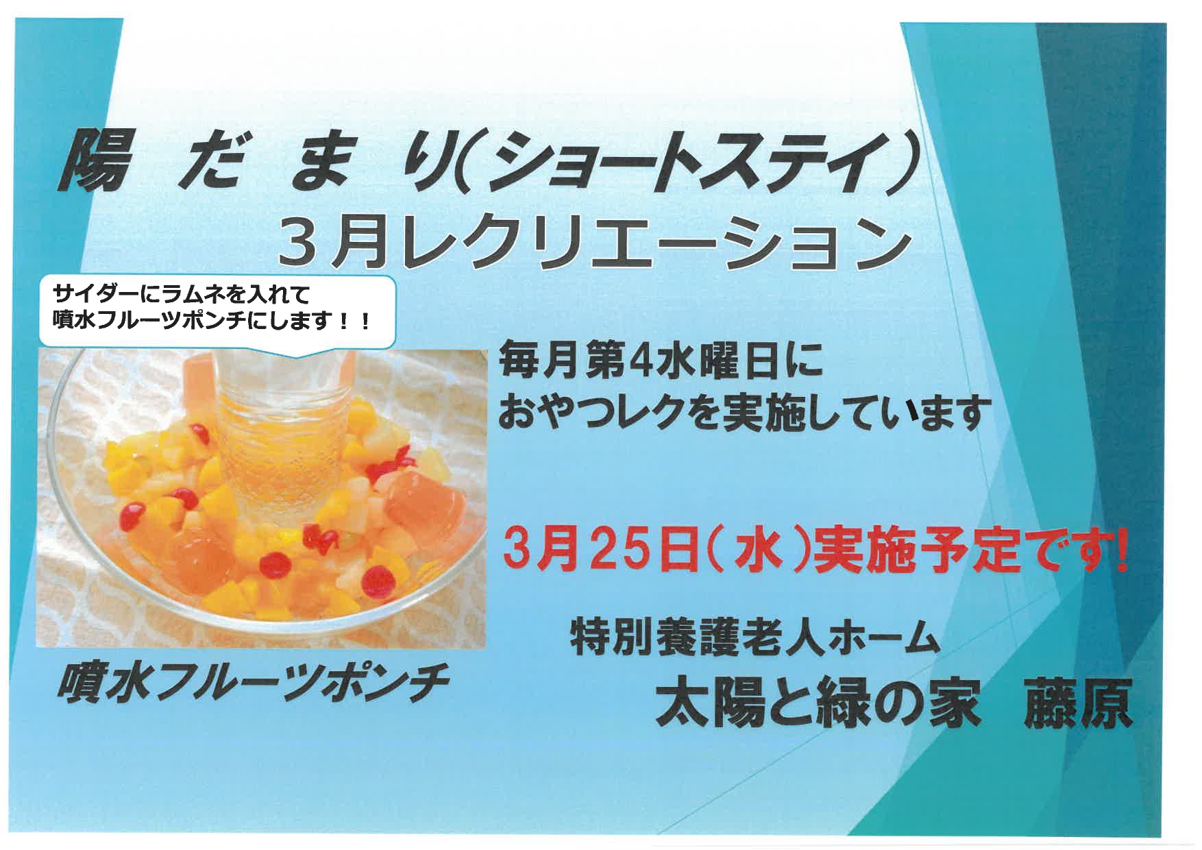【ショートステイ】おやつレクリエーションを実施いたします(3/25)