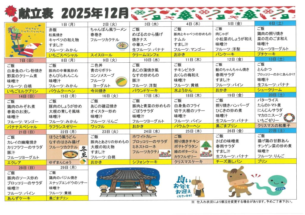 ★2025年 12月献立表★