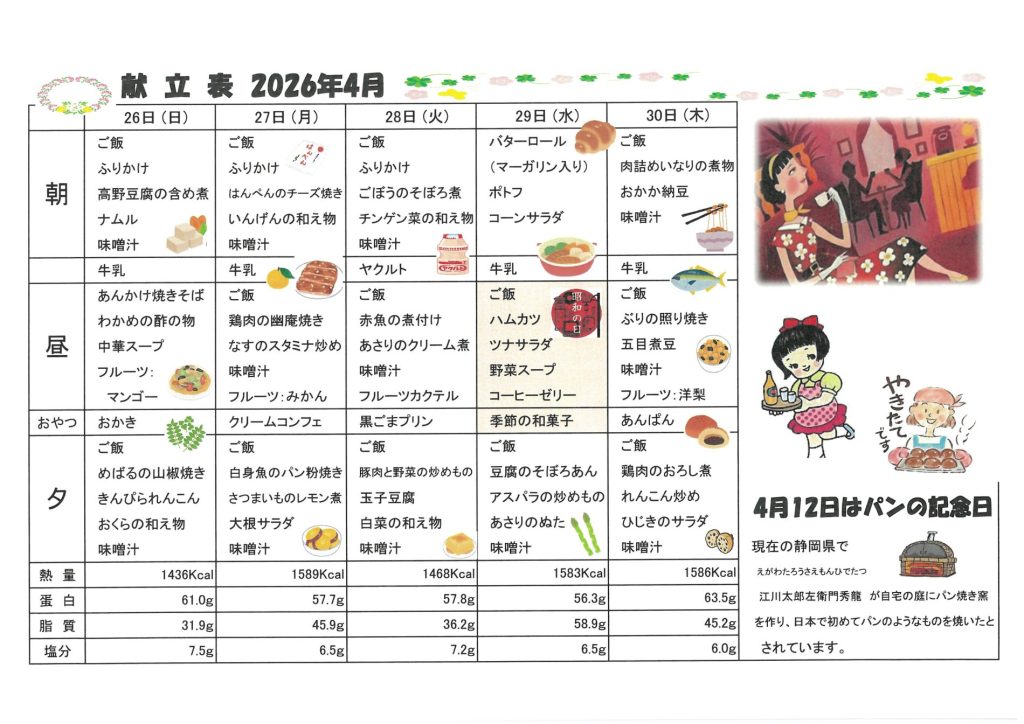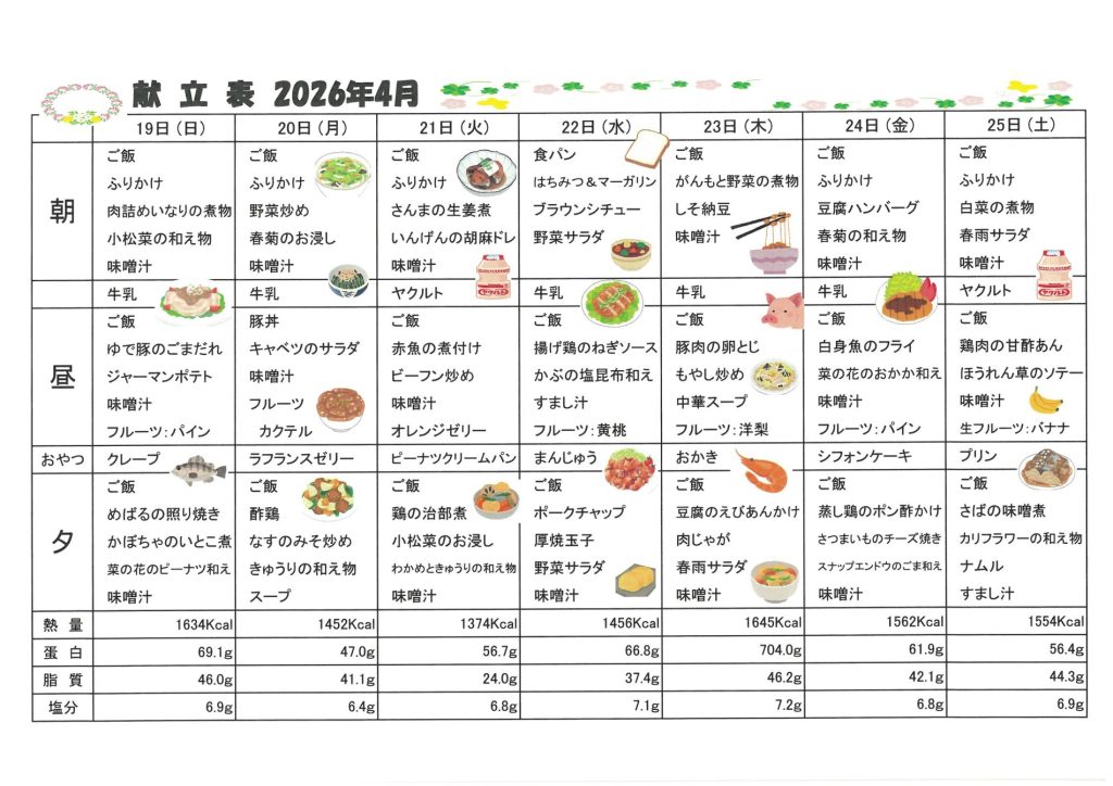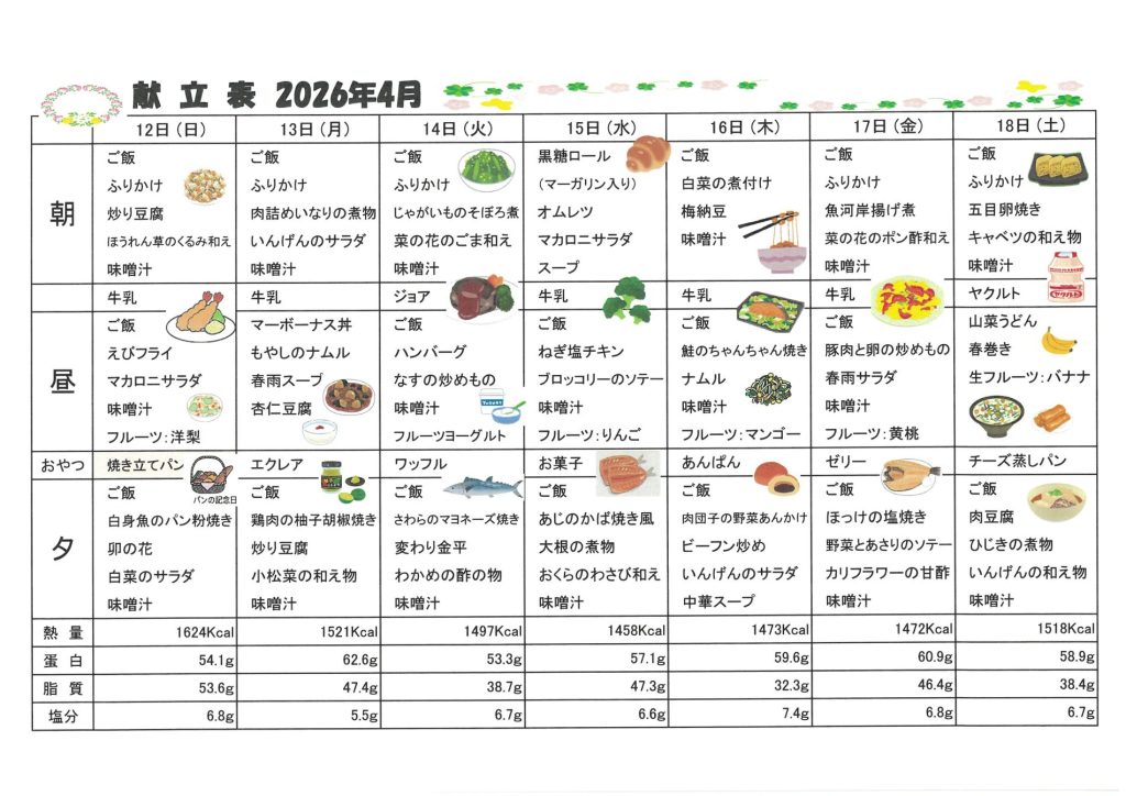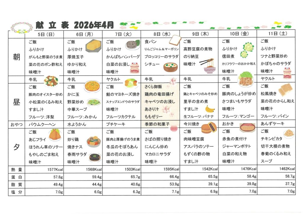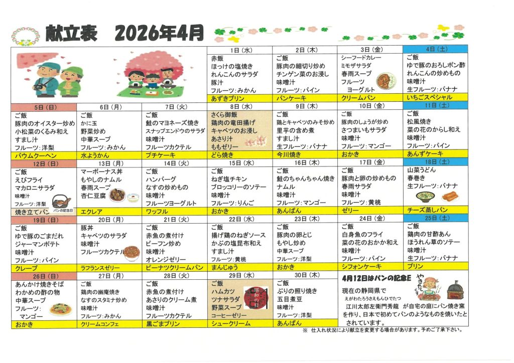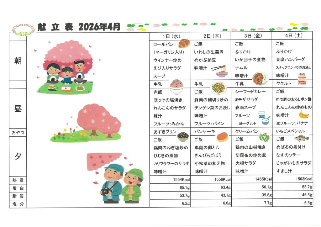 ★2026年 4月献立表★