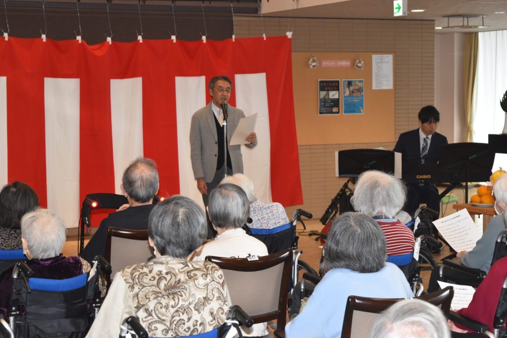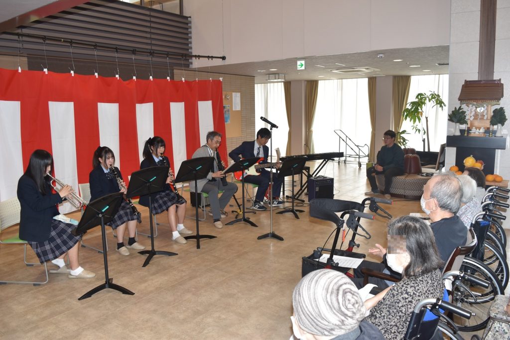 令和8年3月27日(金)、千葉県立船橋法典高等学校の吹奏楽部と合唱部の生徒さん達と先生が訪問され、楽器の演奏と歌を披露してくださいました。