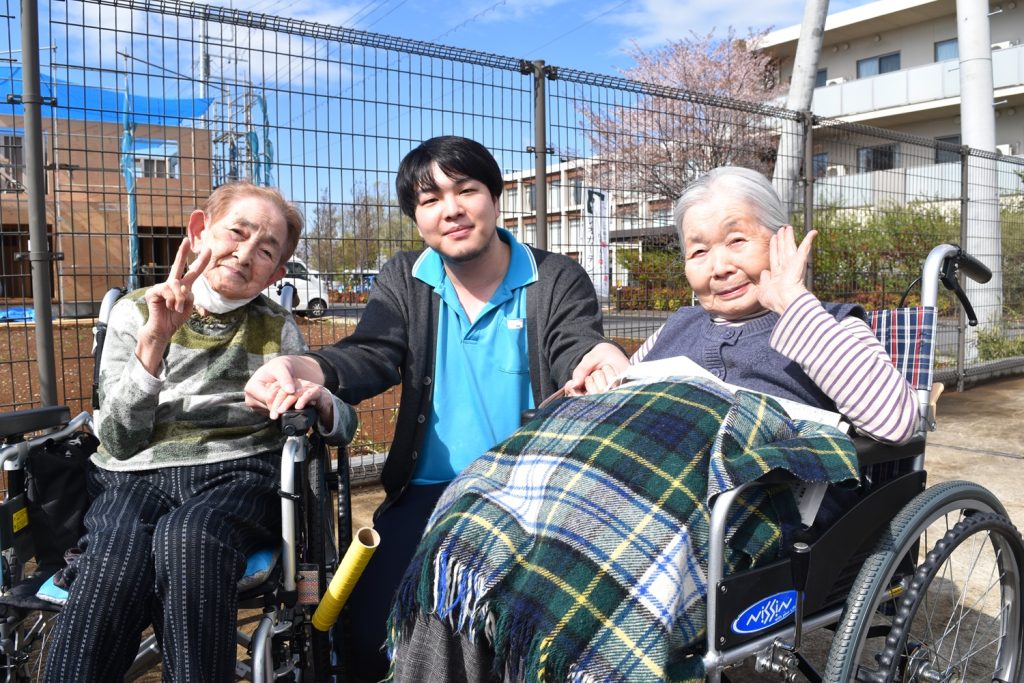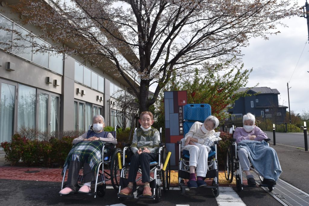 今日は、午前中雨が降っておりましたが、午後から天気が良くなり温かくなったので、本日も入所者様をお連れし、お花見をしました。その時の様子を一部掲載いたしました。