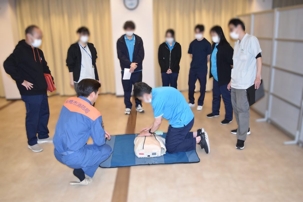 令和7年12月16日(火) 北消防署の方をお招きし、心配蘇生法やAEDの使い方の指導をして頂きました。傷病者の発見から始まり、AEDを使用するまでの一連の流れについて、実技を通して指導していただきました。職員は、心肺蘇生法やAEDの使い方および知識の再確認ができました。北消防署の方々有り難うございました。以下、そのときの様子を掲載させていただきます。