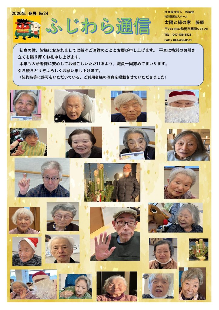2026年冬号「ふじわら通信」が完成しましたので、皆様にお届けいたします。