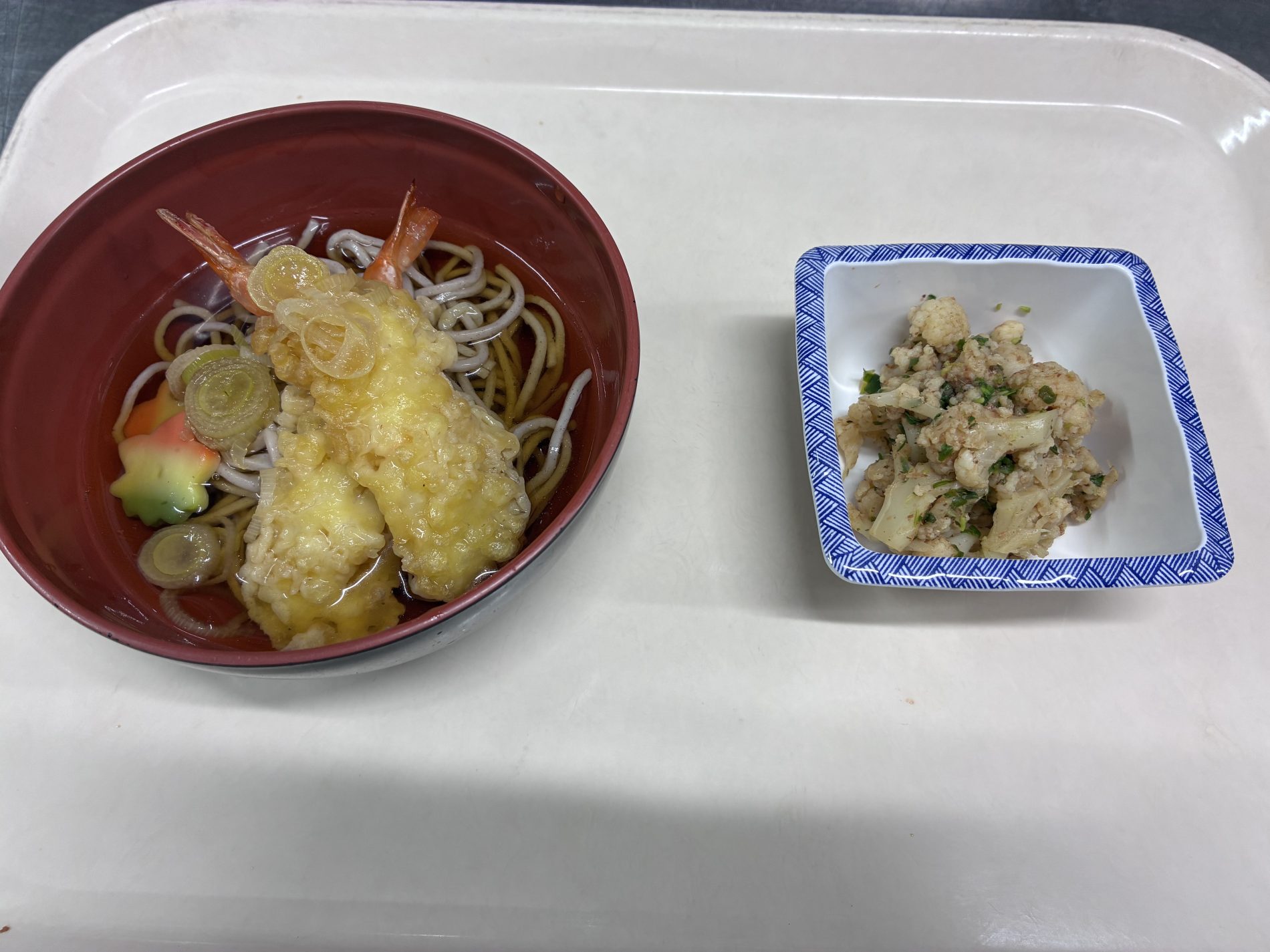 12月31日 夕食に天ぷらそばとカリフラワーのおかかポン酢和え 皆様、味わいながら今年を振り返っていたことでしょう。