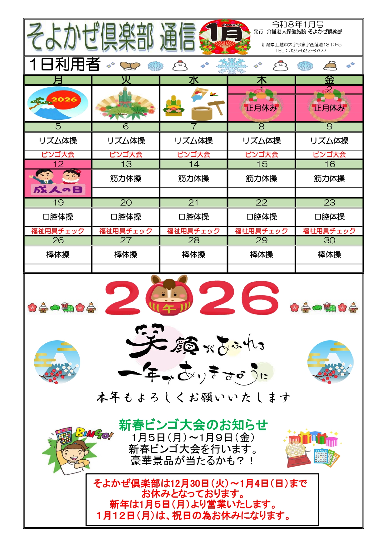 そよかぜ倶楽部通信 令和8年1月号を発刊しました。
