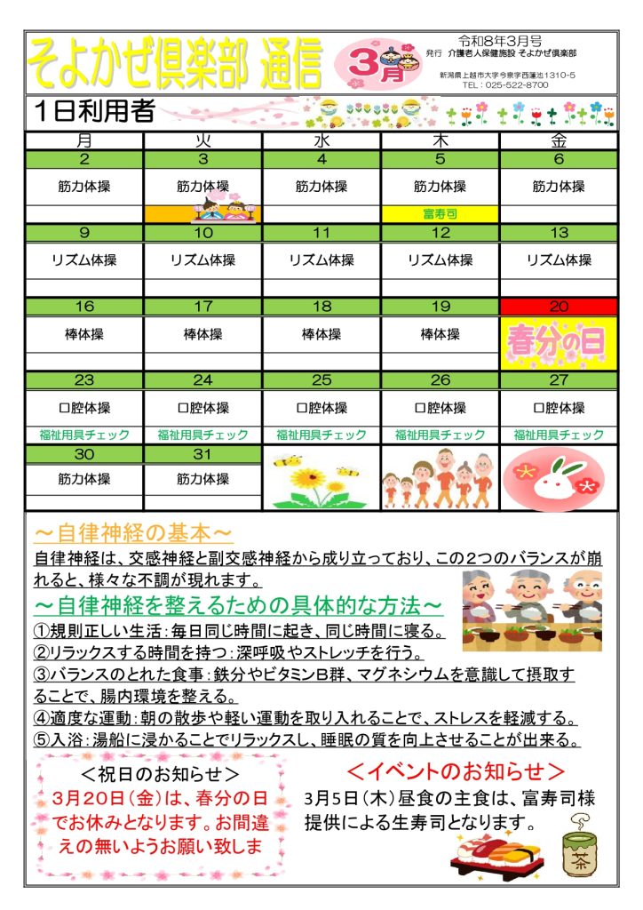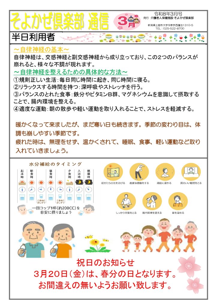 そよかぜ倶楽部通信 令和8年3月号発行しました