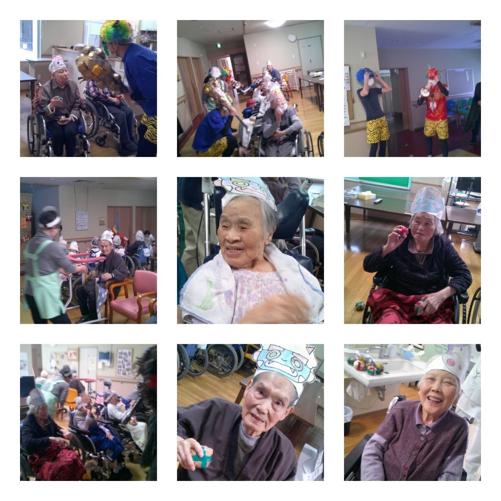 鬼さんは南中ソーランを踊っています。介護スタッフも飛び入り。大盛り上がりでした。
