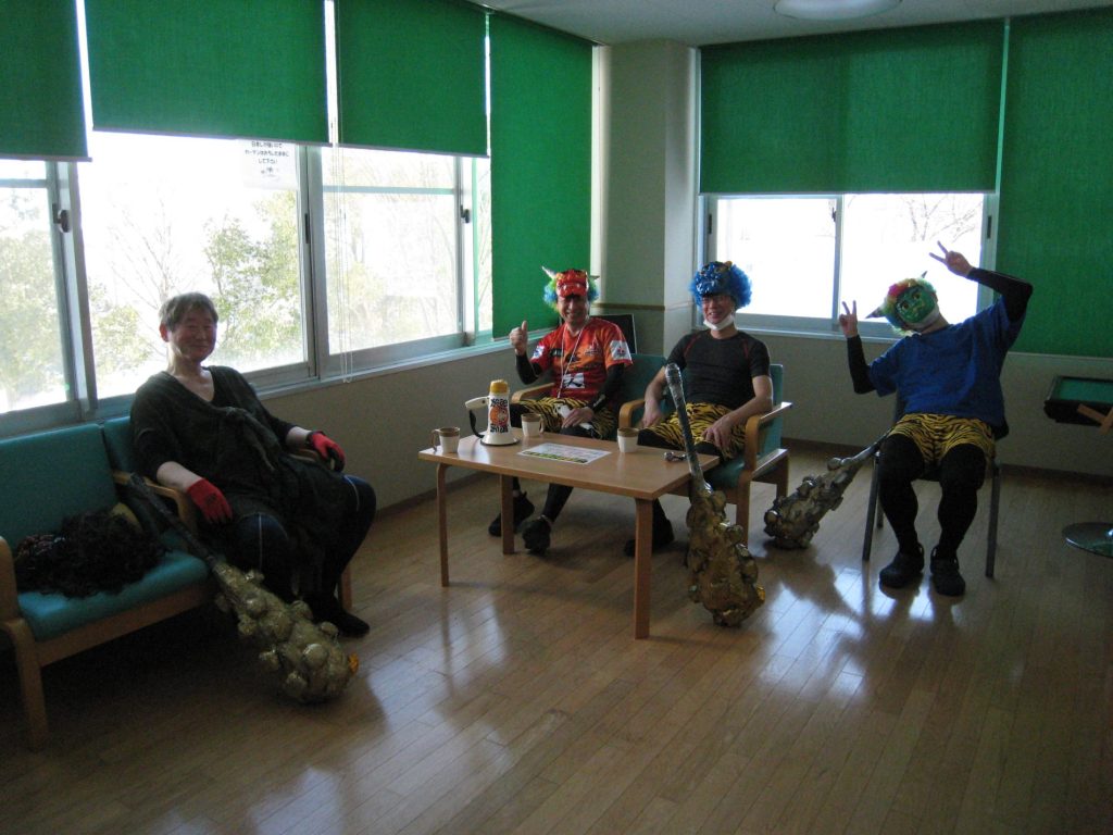 舞台裏 鬼さんもへとへとです。お疲れ様でした。