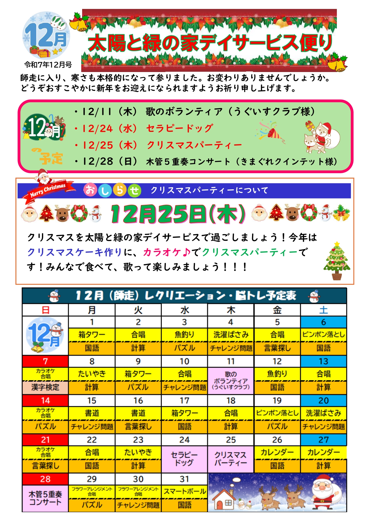 令和7年12月デイサービスだよりを掲載いたしました。