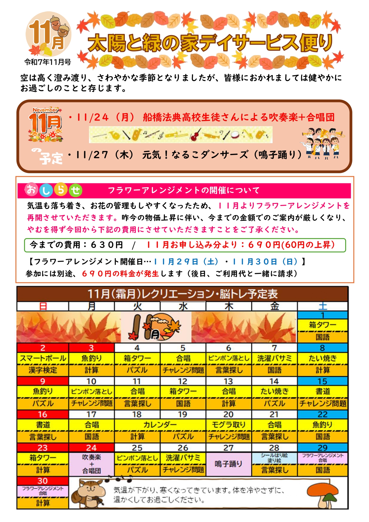 令和7年11月デイサービスだよりを掲載いたしました。