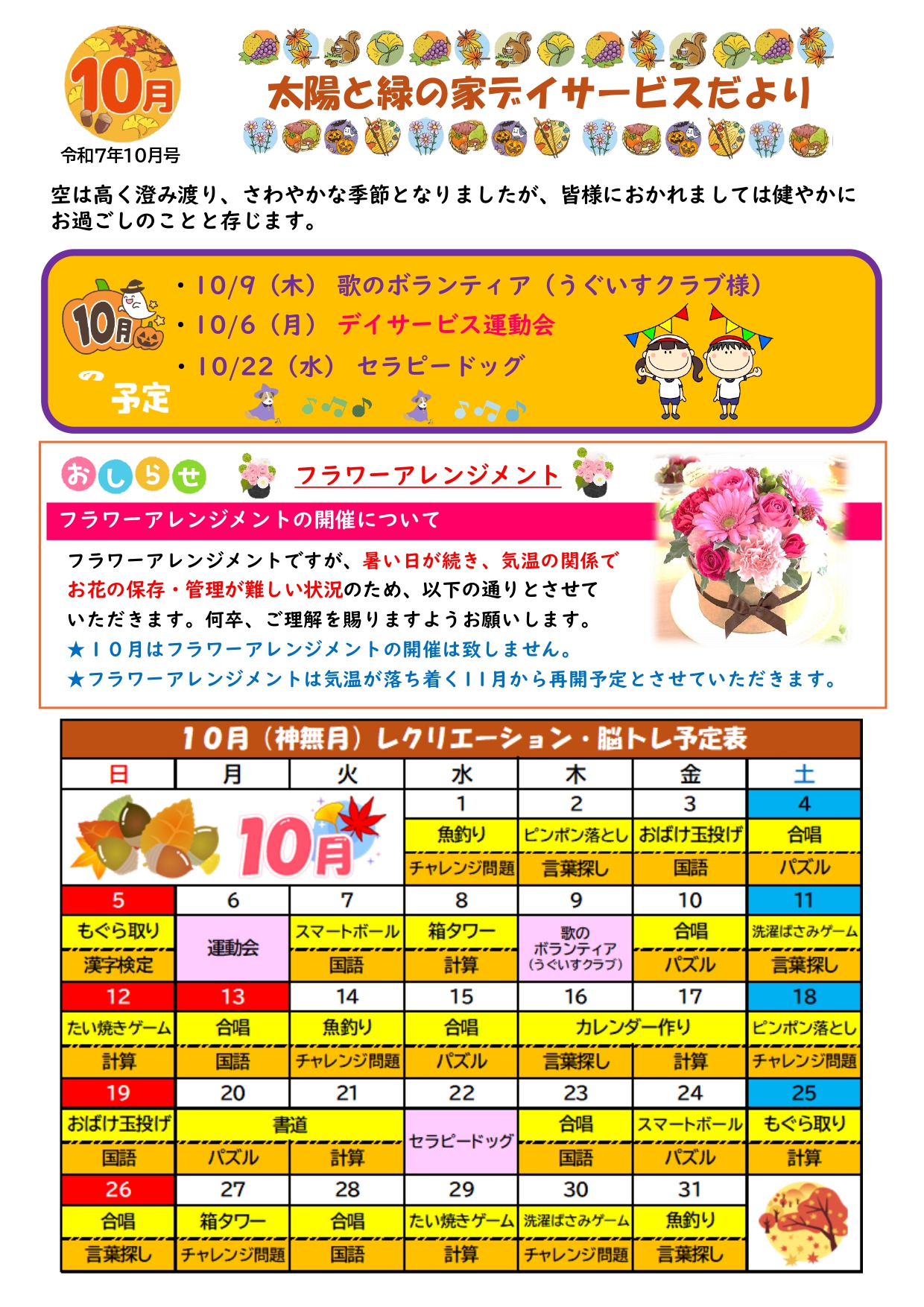 令和7年10月デイサービスだよりを掲載いたしました。