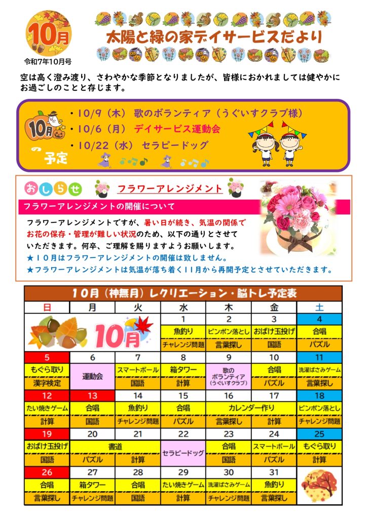 令和7年10月デイサービスだよりを掲載いたしました。