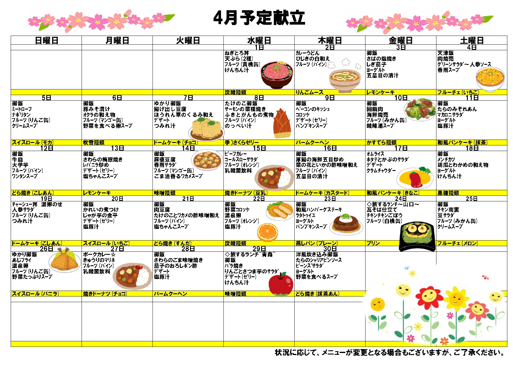 令和8年 4月の献立を作成しました